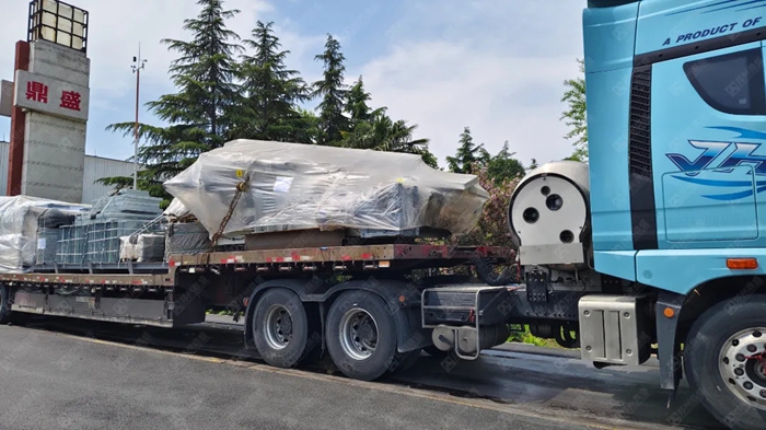 此次发运的装备为郑州鼎盛专为哈萨克斯坦客户量身定制,日处理量达2000吨,适配当地石灰石资源特性与规模化生产需求,涵盖板式给料机、颚式破碎机等核心设备及全套配套组件,形成全流程模块化作业体系,无需复杂土建即可快速安装投产,大幅降低客户前期投入与工期成本。