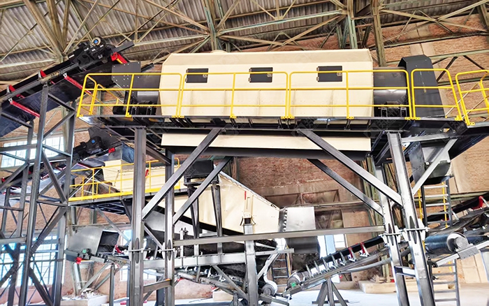 自研驰张筛、阶梯棒条筛、AI 分拣机器人,适配复杂建筑垃圾(混砖、混凝土、木材、塑料)。