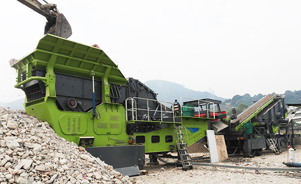 图为郑州鼎盛DPF系列建筑垃圾移动破碎站