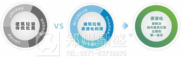 针对目前全国各地高速发展和大规模建设所带来的大量建筑垃圾,郑州鼎盛公司以资源化再生利用为原则,坚持以市场为导向、以关键技术为支撑,以政策扶持为动力,凭借多年的建筑垃圾及其它固体废弃物综合处理的经验,了解客户和市场需求,并依靠公司实力雄厚的技术实力,加强战略合作,组建专业团队,积极推广建筑垃圾处置等固废处置新理念和新技术,并致力于将先进、实用的设计理念和性能可靠的设备结合,为客户提供成套化的建筑垃圾资源化利用系统解决方案,能有效解决目前城市建筑垃圾的运输、堆放、处理的难题,节约土地资源,降低环境污染,实现城市生态环保和循环有序的发展。