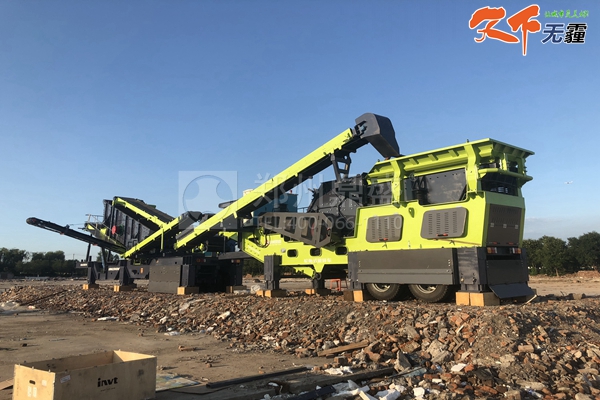 郑州鼎盛轮胎式移动破碎站在北京处理建筑垃圾现场