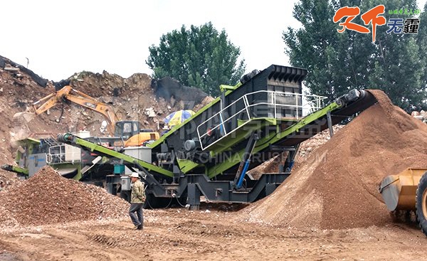 图为WAF250轮胎式移动破碎站在洛阳使用现场,破碎矿石