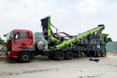 移动破碎站的主要组成部分:由给料设备、破碎设备、筛分设备、输送设备、除铁设备、电气控制系统以及“船型”车架等组成,既可实现单台作业,也可以根据用户的具体要求来组合